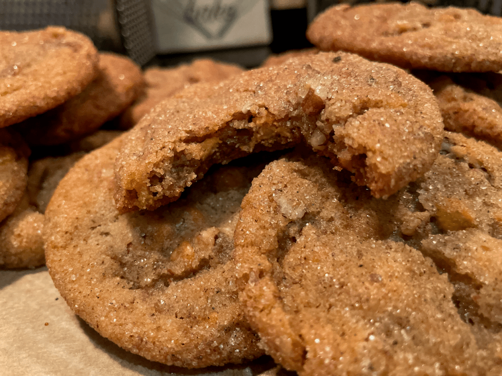 If you come to this blog often, you will already know that I am not a creator of recipes, but a finder, tester and tweaker of them. This recipe, for the Salty Sweet Pecan Cookie, is perfect as it is in its original form by King Arthur Flour. I have made their recipe multiple times and each time (with tweaks) it comes out a little better. I wouldn’t say I changed anything, but a few tweaks I’ve made include mixing dry ingredients and wet ingredients separately, using more pecans (they suggest 1 & 1/3, I found that to be insufficient; ditto with the butterscotch chips) and as always, more vanilla and sugar: I’m a heavy pour on the sugar, and I always add at least 1/2 teaspoon of vanilla powder and about a 1/16th of curio’s vanilla bean powder to any recipe that can stand it.