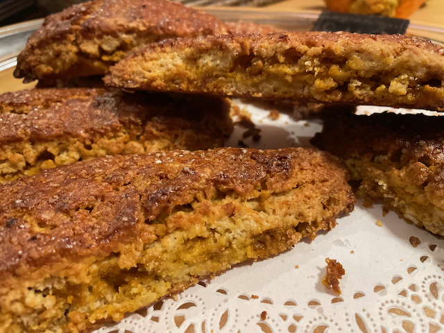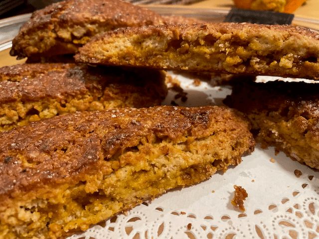 My lifelong love of Scones came from a coffee shop in Washington Square, Brookline (back in the day) that had the best maple-oatmeal scone that I ever ate. I really wasn’t even a scone fan, thinking them dry and crumbly, without flavor, maybe too much butter, and overall a waste of time. But knowing what I know now, I suspect that wasn’t a traditional ‘cream’ scone but somehow modified to include an egg which I think gives it a better mouthfeel. In any case, my family’s love of butterscotch chips (In the title nicknamed for one of my kids who couldn’t pronounce the ingredient but loved the flavor) led me to order industrial size bags of the chips. So, during lockdown, I figured I’d better start finding recipes to use them up. Besides the egg cheat, the ground oats give the scone a nice texture that isn’t just flour. A couple of hours later, the scones are still moist not dry and crumbly.